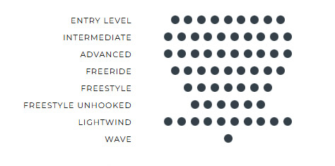 Infinity V4 je primerna za freeriderje, ki želijo podaljšati svoje seanse v šibkejši veter, in težje kajtarje, ki potrebujejo večjo površino brez izgube zmogljivosti. Odlično se obnese tudi kot prva twin tip deska za lokacije s šibkim vetrom.