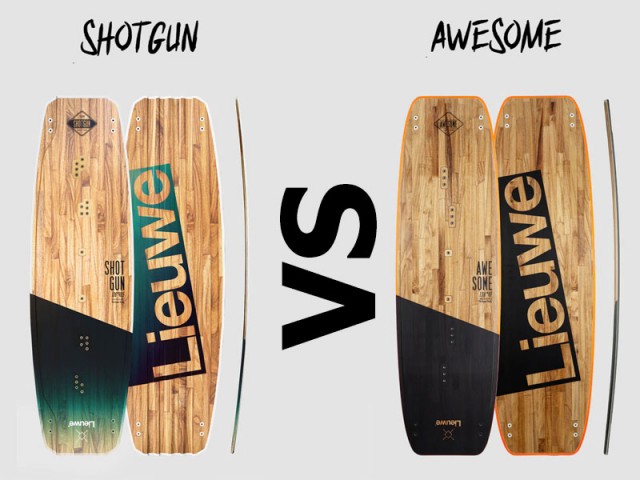 Shotgun je popolna deska za prosti slog in velike skoke. Je dobra izbira za začetnike, ki prehajajo na srednjo raven in celo za profesionalce. Awesome pa je popolna deska za začetnike in srednje izkušene, ki želijo udobno vožnjo. Oblika Awesome omogoča hitre vodeče startne točke, pomaga vam zlahka drsati proti vetru in nudi zelo stabilno in udobno vožnjo. Shotgun je preprosto naprednejša deska z več funkcijami, ki vas pripeljejo na naslednjo raven. Če na primer že obvladate vodeče startne točke, znate voziti proti vetru in že izvajate svoje prve skoke in trike, potem lahko razmislite o prehodu na Shotgun za večji odboj, oprijem in hitrost.